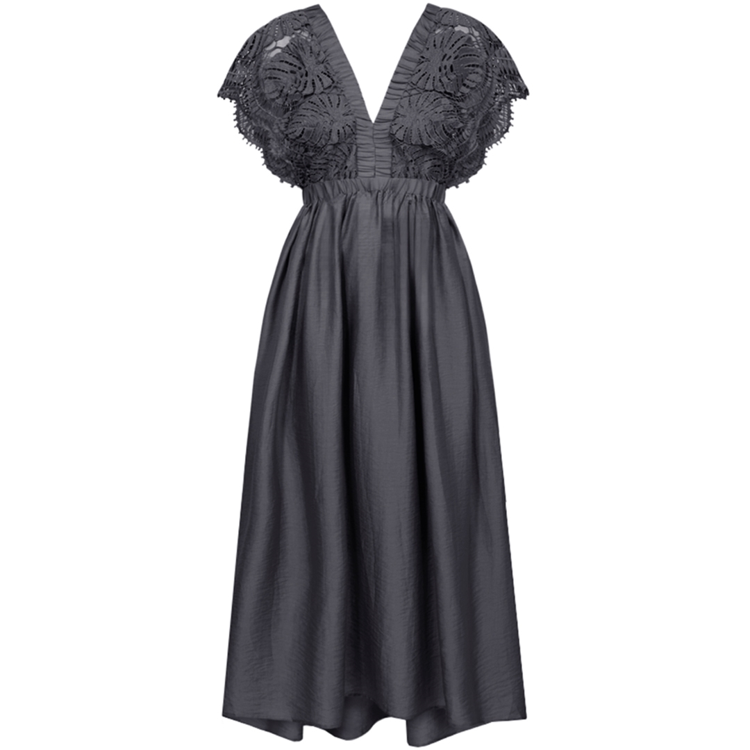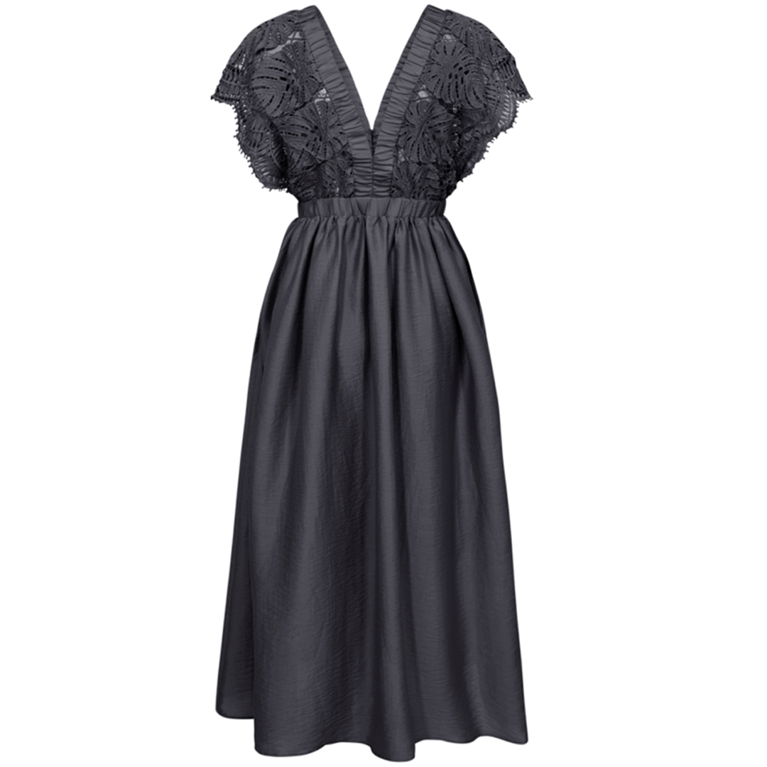 Feminin Cole kjole designet med voluminøst skørt og delikat blondeoverdel