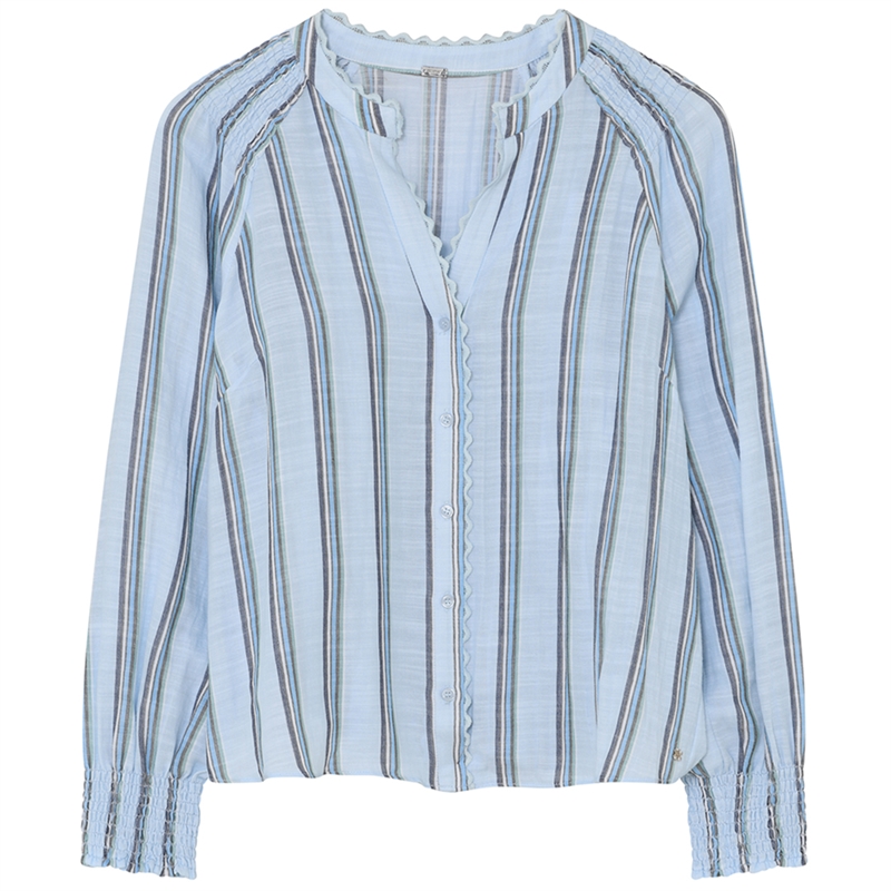 Fantastisk Kora skjorte designet med simpelt snit, stribet mønster og bølget kanter