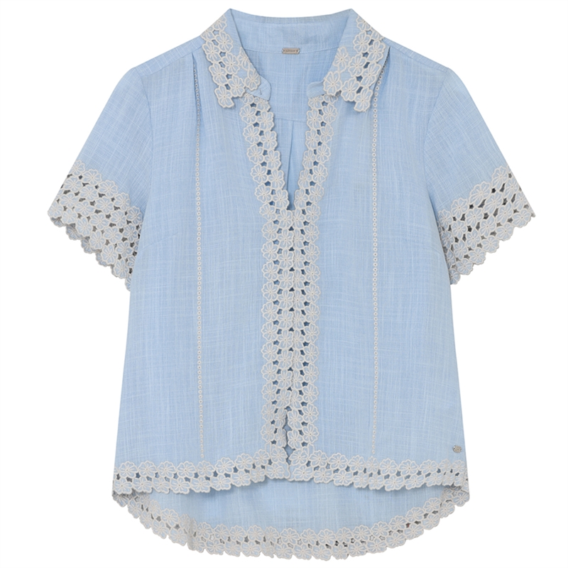 Skøn Lilje skjorte designet med meget smukt blomsterbroderi ved alle kanter