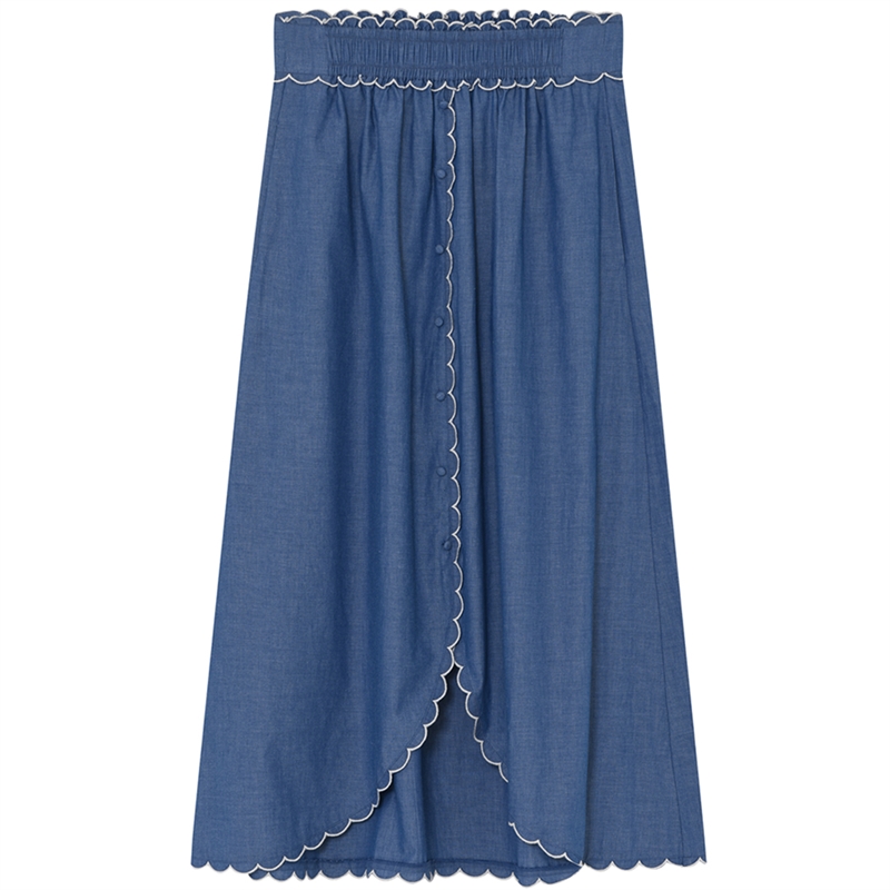 Sofistikeret Mabell Long nederdel designet smukke råhvide blondekant i en denim-lignende kvalitet