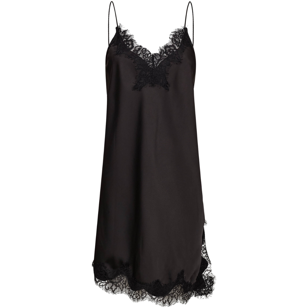 Feminin Naomi Asym Lingerie kjole designet med flotte asymmetriske blondedetaljer
