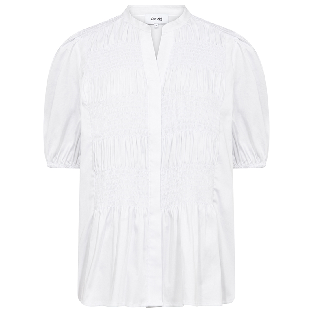 Sød Isla Solid 137 skjorte designet med feminin snit og smock-struktur på front