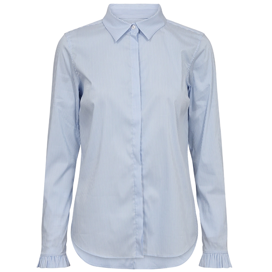Klassisk Mattie Flip Stripe skjorte designet med stribet mønster og fine flæsedetaljer ved håndled