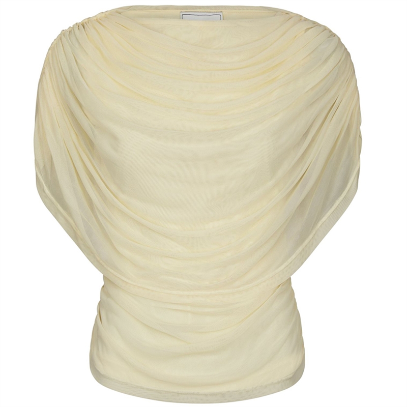 Smuk Cottuna Drapy Mesh top designet i en let mesh-kvalitet med flatterende silhouette