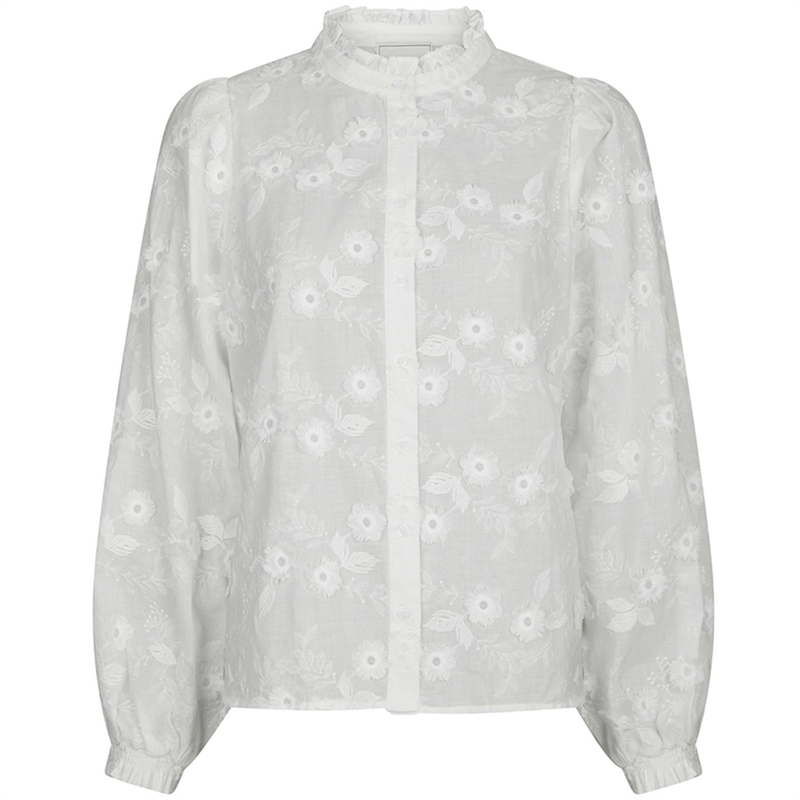 Feminin Oda Deco Emb skjorte designet med tone-i-tone blomsterbroderi på hele skjorten