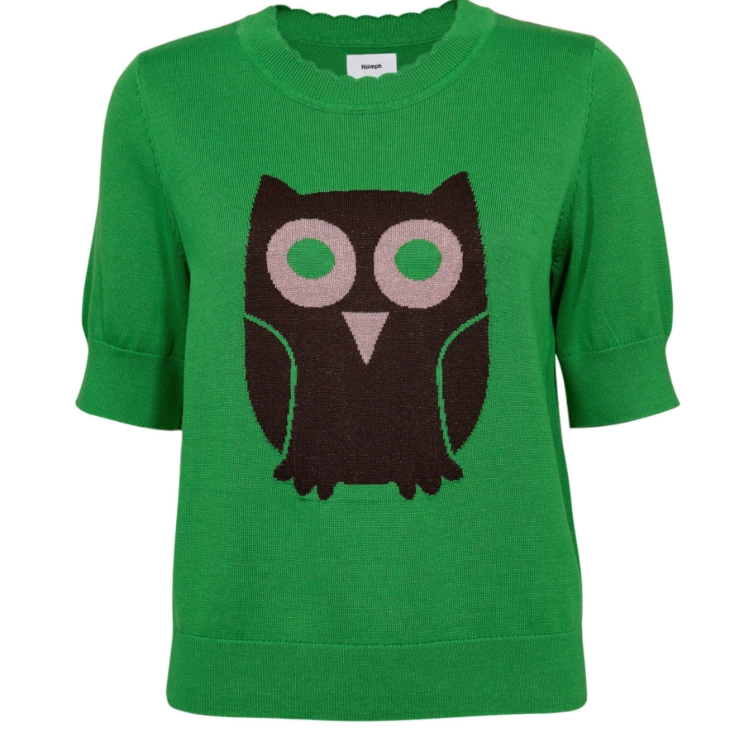 Sød Glimma Pullover strik designet med ugle motiv på front