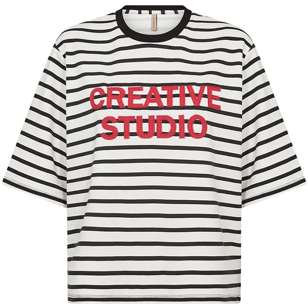 Skøn Barni 54 t-shirt designet med stribet mønster og statement broderi på front