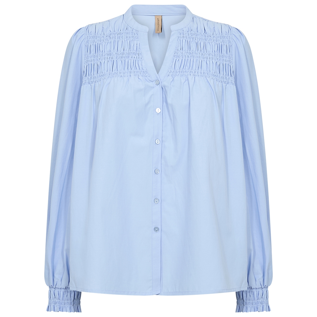 Feminin Netti 116 skjorte designet i en luftig kvalitet med rynkede smock-stykke henover brystet