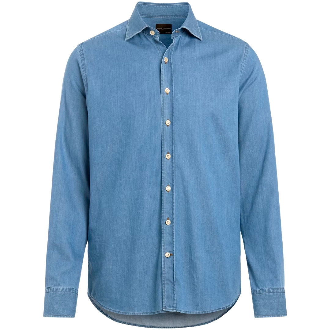 Oscar Jacobson Slim Fit Cut Away Washed Denim Skjorte